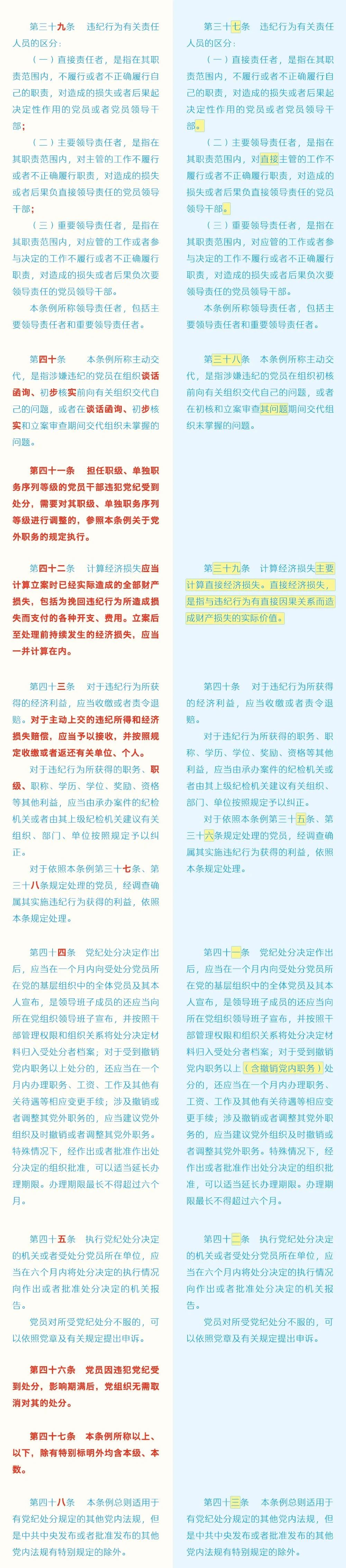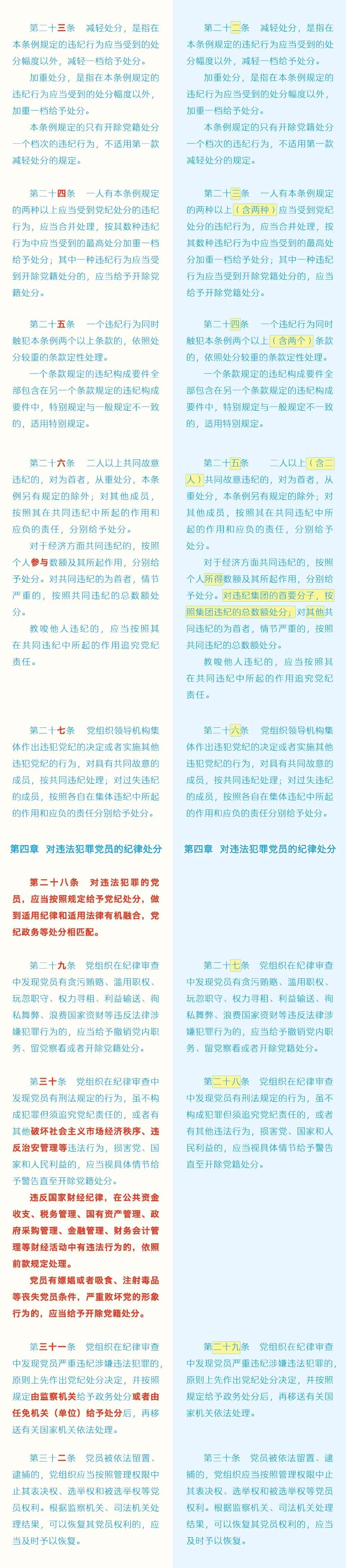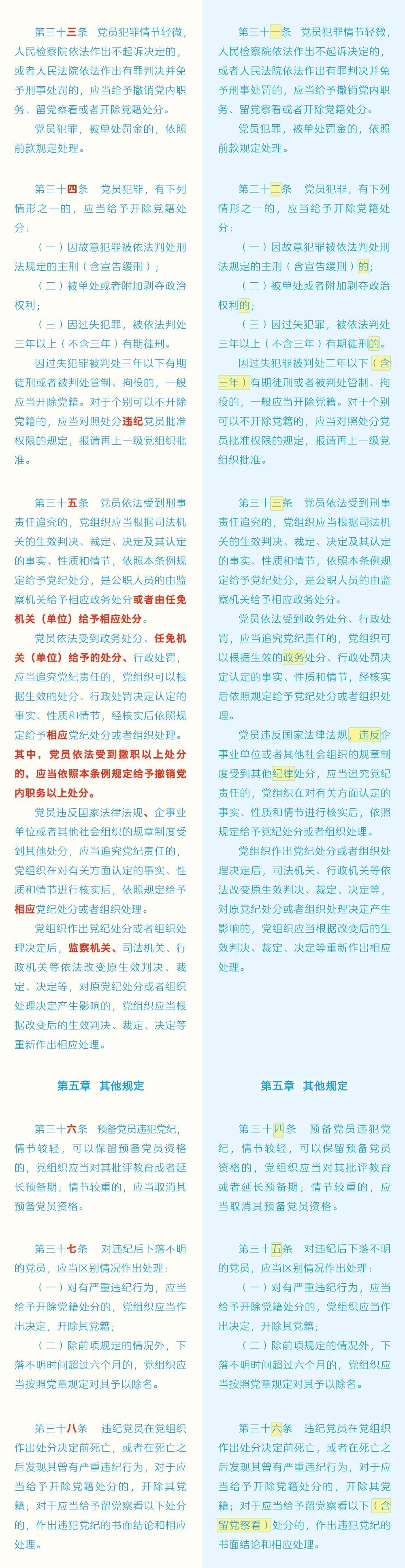 黨紀(jì)學(xué)習(xí)教育 | 《中國共產(chǎn)黨紀(jì)律處分條例》修訂條文對照表