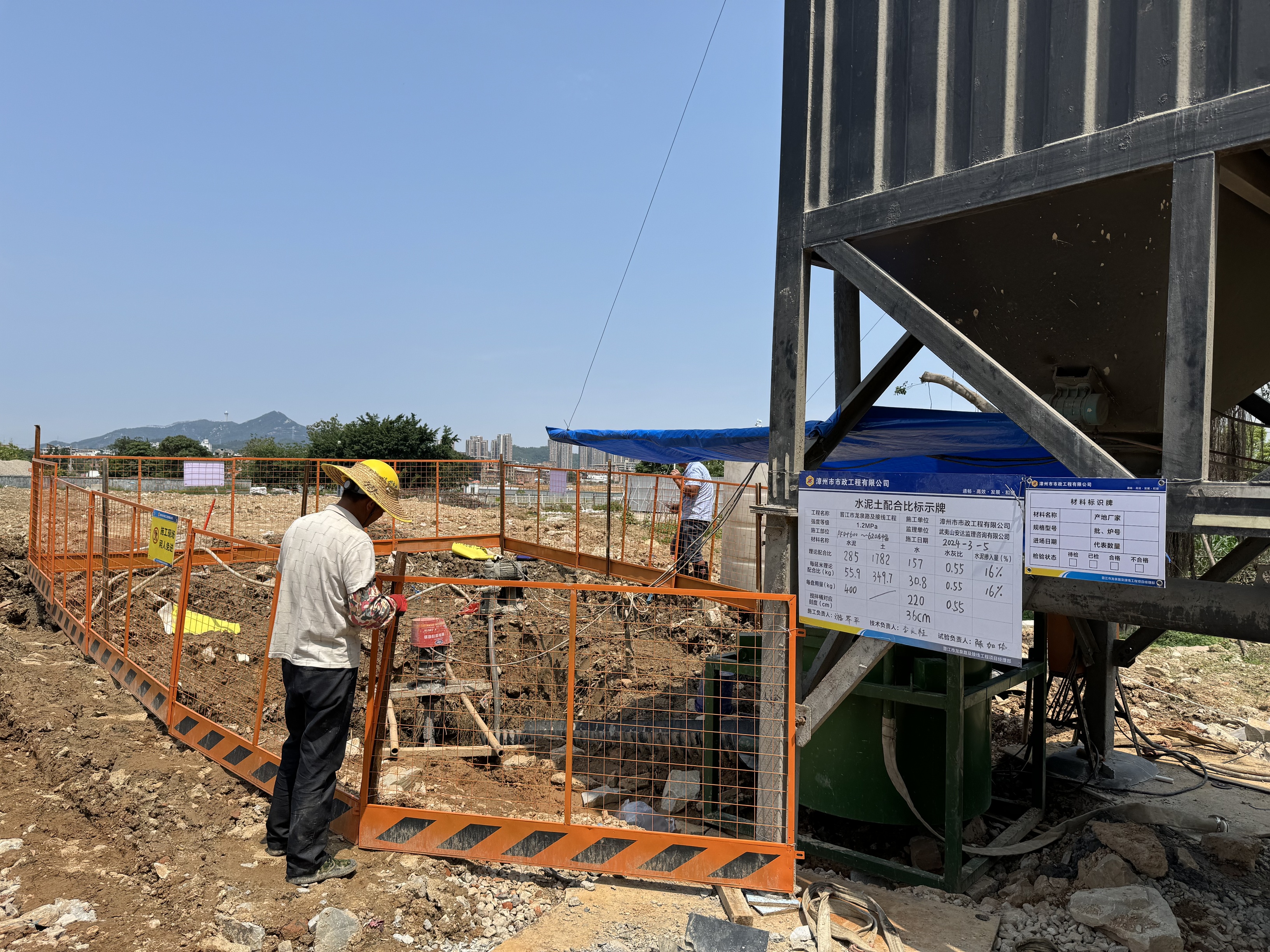 項(xiàng)目正處于前期建設(shè)階段,已完成項(xiàng)目部駐地建設(shè)、施工現(xiàn)場(chǎng)圍擋、洗車(chē)池建設(shè)、清表及水泥攪拌樁試驗(yàn)樁等工作。