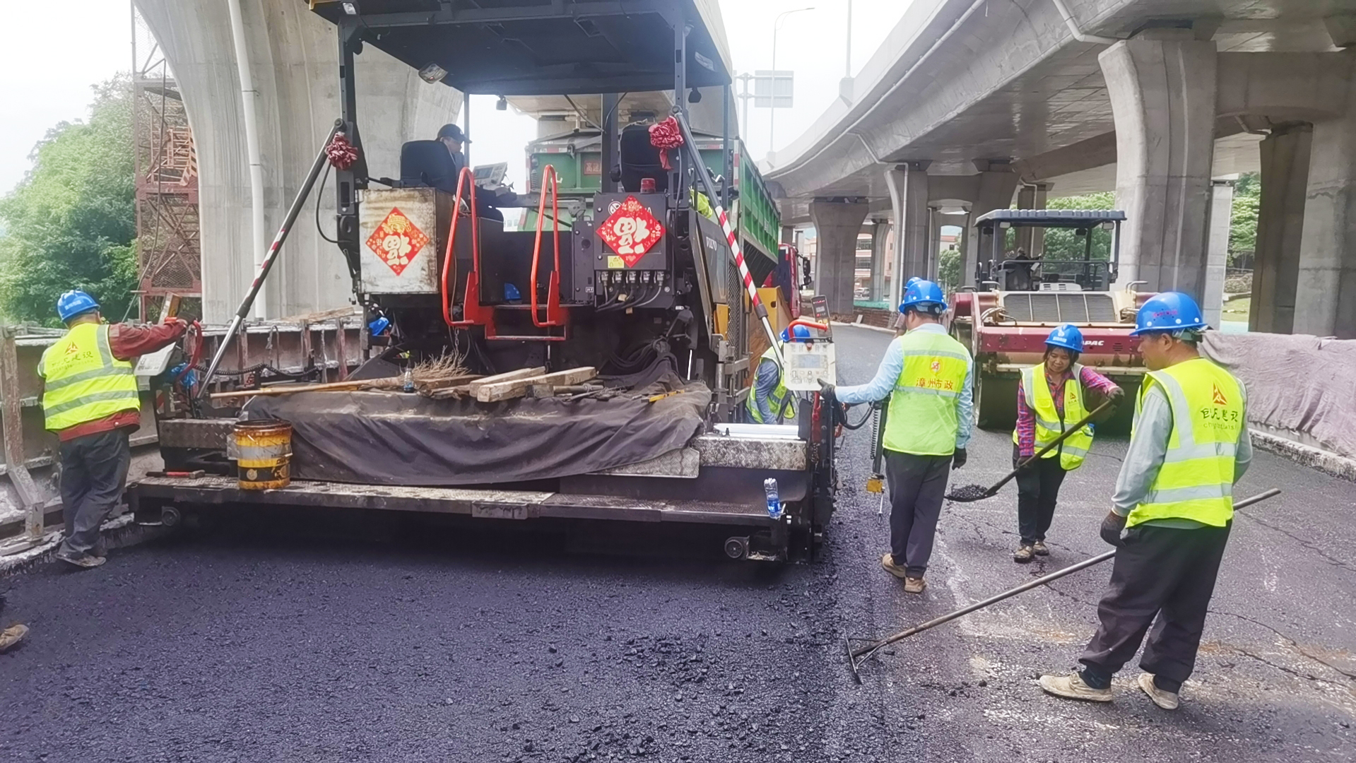 省道219線(xiàn)龍海雩林至翠林段提升改造工程A1標(biāo)段瀝青混凝土路面工程,采用主線(xiàn)高架+地面輔道模式,“五一”假期,兩臺(tái)攤鋪機(jī)同時(shí)作業(yè)、有序攤鋪,現(xiàn)場(chǎng)作業(yè)人員與機(jī)械密切配合,確保攤鋪達(dá)到設(shè)計(jì)要求。目前,項(xiàng)目已完成頂社互通A、B、E匝道和同城大道拼寬段瀝青混凝土路面攤鋪。該階段施工任務(wù)完成后,累計(jì)完成產(chǎn)值1600萬(wàn),占瀝青混凝土路面總產(chǎn)值60%,為實(shí)現(xiàn)項(xiàng)目后續(xù)階段性目標(biāo)爭(zhēng)取了寶貴時(shí)間,也為實(shí)現(xiàn)總體目標(biāo)奠定了堅(jiān)實(shí)基礎(chǔ)。