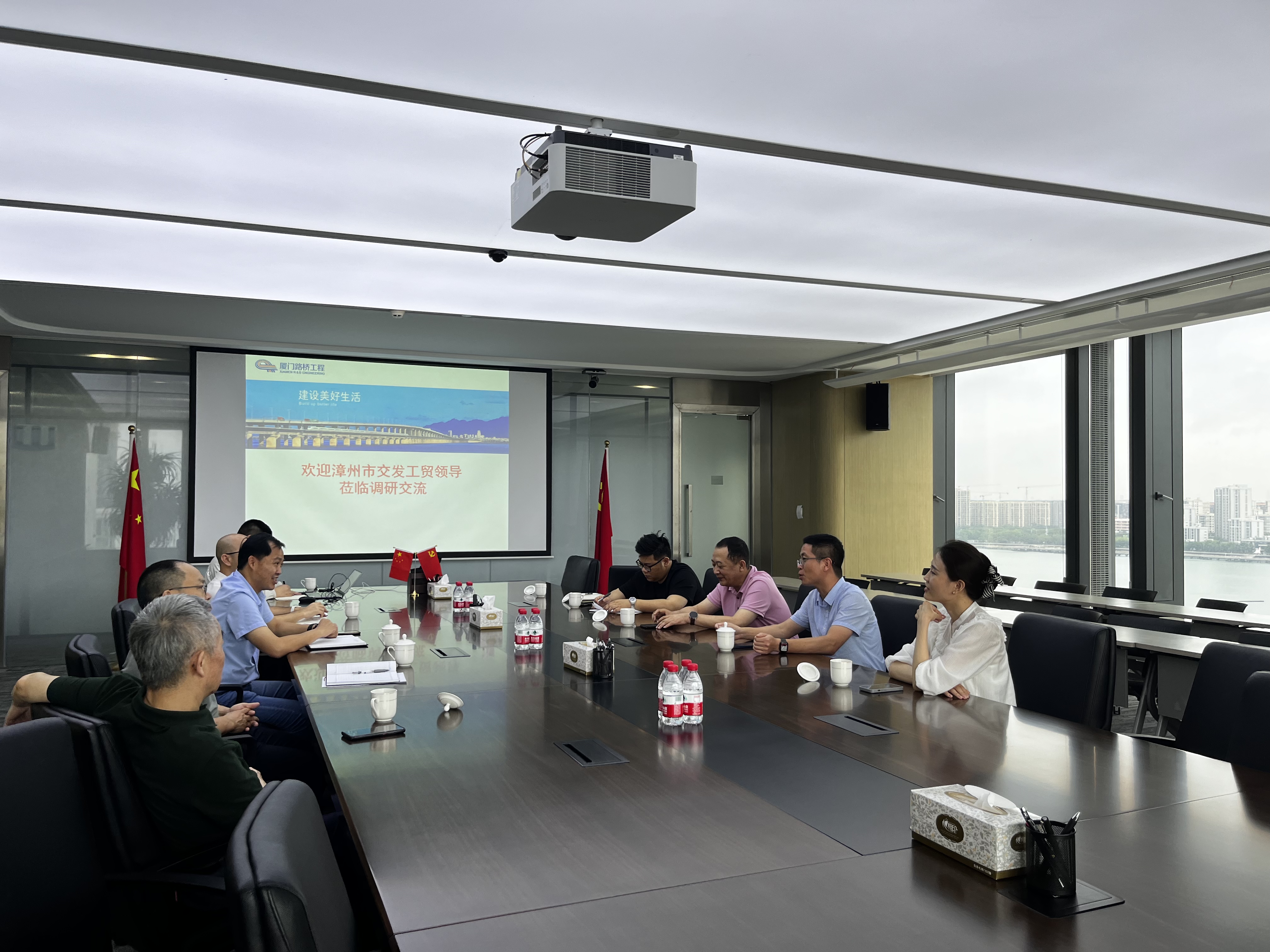 5月27日下午,交發工貿集團董事長李夏、總經理師國勝一行到廈門路橋工程投資發展有限公司開展調研交流活動。