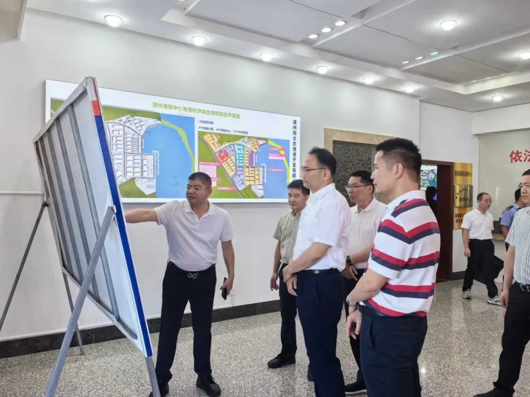 調研中,市領導分別聽取了漳州交通集團關于港尾中心漁港經濟綜合體、龍海區深海養殖及海洋三新科技產業園等項目整體規劃布局工作的匯報,實地察看了港尾中心漁港經濟綜合體項目中水產品交易市場、凍庫、預制菜產業園、冷鏈物流等園區項目的推進情況,并提出了項目建設過程中具有創新性、指導性的意見與建議。