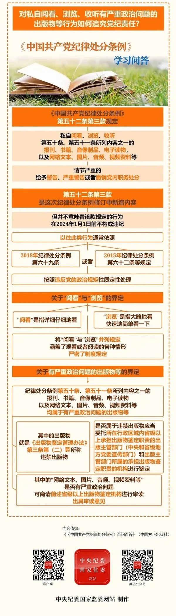 黨紀學習教育 | 對私自閱看、瀏覽、收聽有嚴重政治問題的出版物等行為如何追究黨紀責任?