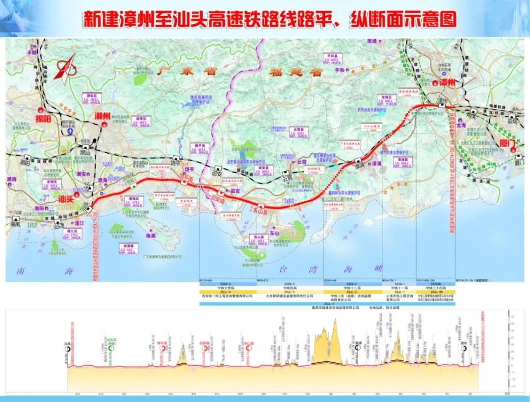 漳汕高鐵項目北接福廈高鐵,南連汕汕高鐵,全長約175公里(福建段全部在漳州市境內(nèi),長約127.2公里),共設漳州、漳浦、東山縣、詔安南、饒平南、汕頭東、汕頭等7座車站(漳州、漳浦、汕頭為既有站,汕頭東為預留站,其余為新建站),設計時速350公里,計劃工期4.5年。