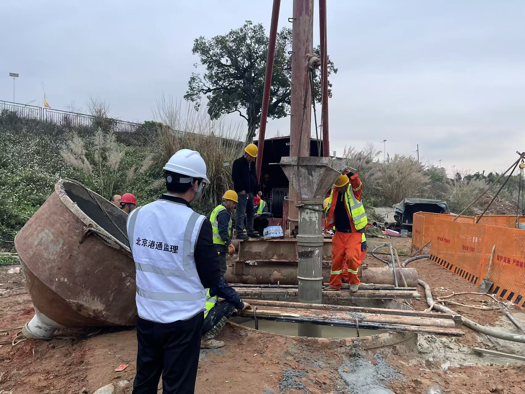 為確保首樁順利灌注,通邦公司項目團隊精心籌備,嚴格把控每一個施工環節。施工前期,技術人員對地質情況進行了詳細的分析,制定了科學合理的施工方案;針對可能出現的如塌孔、堵管等質量安全隱患制定了應急預案。