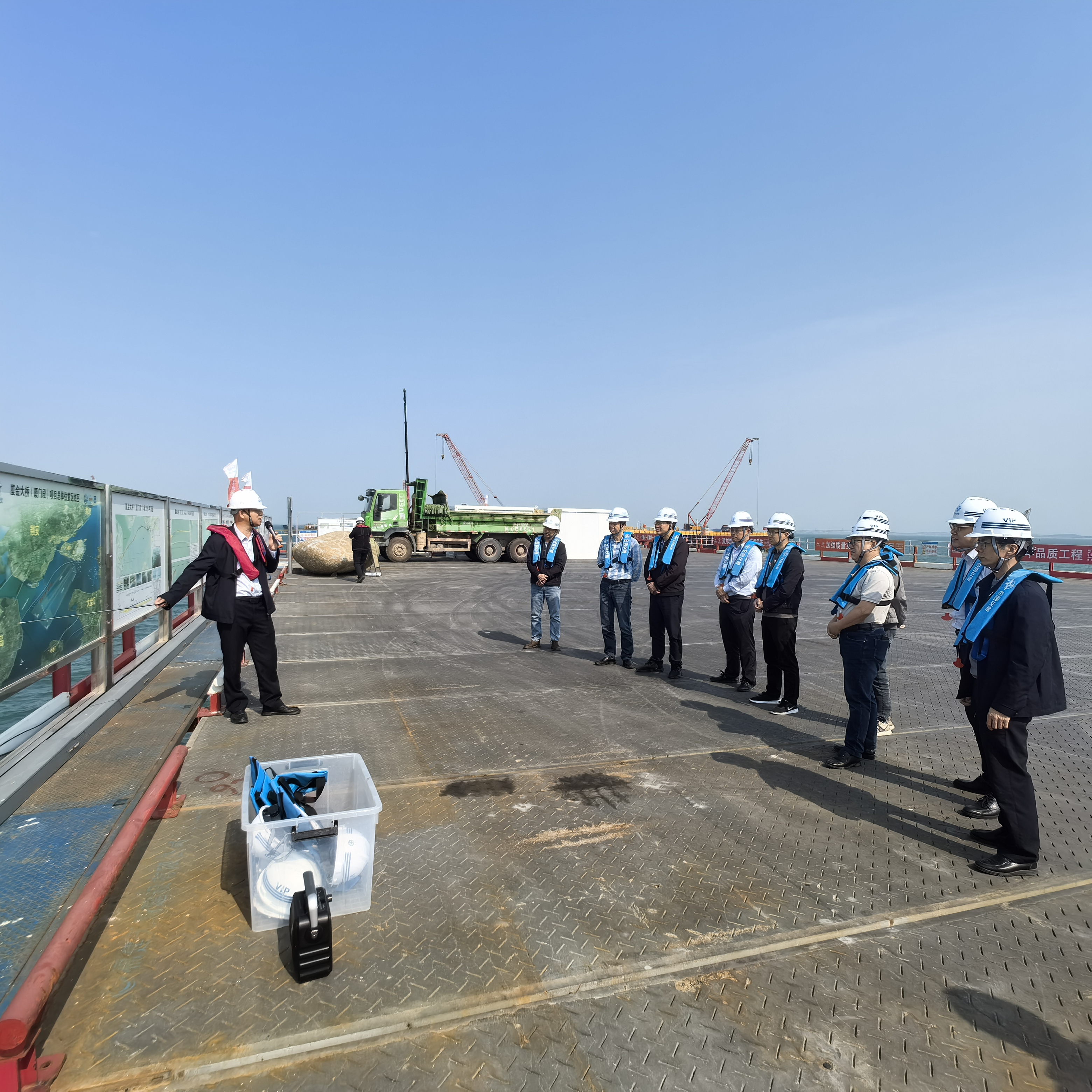 在廈金大橋(廈門段)智慧中心,項目建設(shè)單位通過播放項目宣傳片、沙盤模型以及現(xiàn)場航拍影像等方式,全面展示了廈金大橋(廈門段)項目概況、工程整體進度、施工重點難點、技術(shù)成果以及智慧管理平臺等內(nèi)容。參加參觀學(xué)習(xí)的人員還與建設(shè)單位就項目建設(shè)的關(guān)鍵節(jié)點技術(shù)、工程創(chuàng)新亮點等方面進行了深入的交流和探討。
