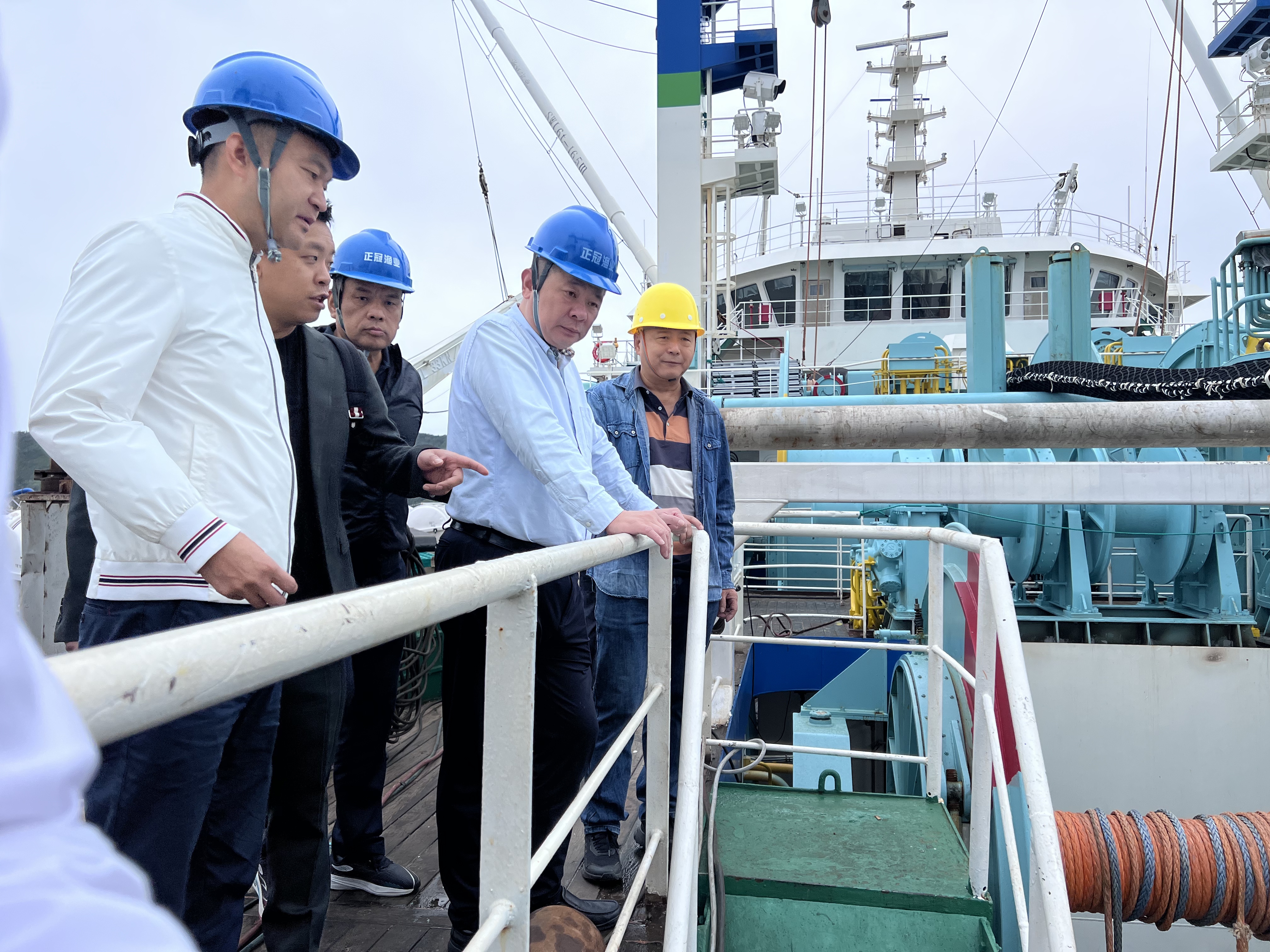 調(diào)研組登船察看了 “福遠(yuǎn)漁9199” 號的核心作業(yè)系統(tǒng)。據(jù)介紹,該船總噸位1.6萬噸、總投資約6.5億元,是國內(nèi)首批自主研發(fā)的專業(yè)磷蝦捕撈加工船,其搭載的國際頂尖連續(xù)泵吸系統(tǒng),能在對磷蝦群造成最小損傷的前提下實現(xiàn)高效捕撈,技術(shù)指標(biāo)處于世界同類船舶領(lǐng)先水平,大幅提升漁獲保鮮度。